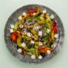 Salat, Rote Zwiebeln, Hirtenkäse, Oliven, Gurken, Tomaten, Peperoni & Rucola