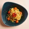 Mit hausgemachtem Basilikum-Pesto (Basilikum, Pinienkerne, Grana Padano, Olivenöl), Cherrytomaten & Grana Padano