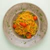 Mit hausgemachtem Basilikum-Pesto (Basilikum, Pinienkerne, Grana Padano, Olivenöl), Cherrytomaten & Grana Padano